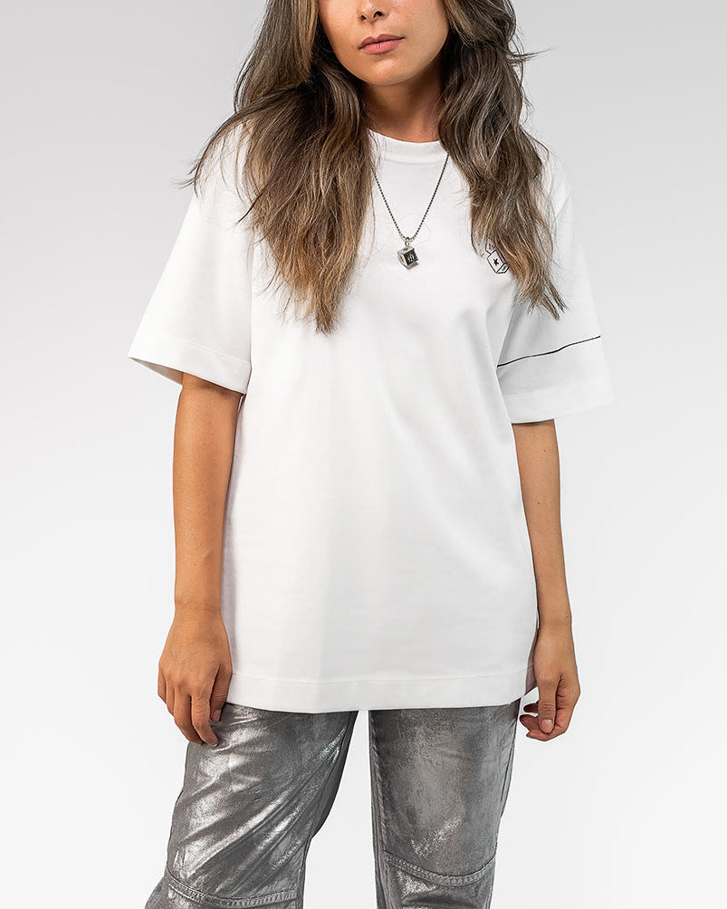 Está fabricada en una tela de alto gramaje de 250 g, en un tono vainilla suave. Su composición —85% algodón, 11% poliéster y 4% spandex— logra el equilibrio perfecto entre estructura, suavidad y elasticidad, acompañándote en cada movimiento con total comodidad.