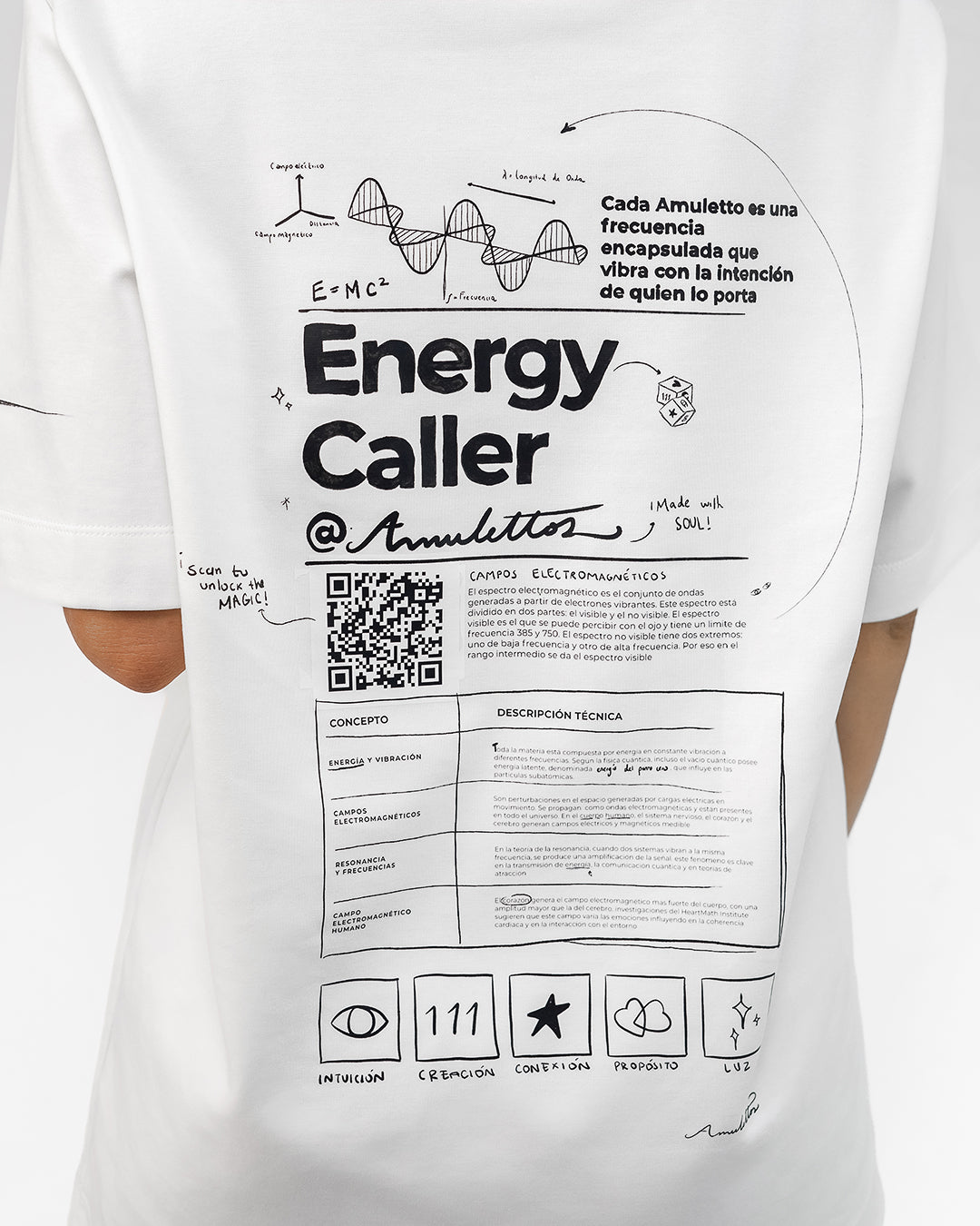Incluye cuello redondo y un detalle muy Amulettos: una frase llena de energía y buena onda en la parte posterior, pensada para recordarte en el poder de la energía que camina contigo, siempre.
