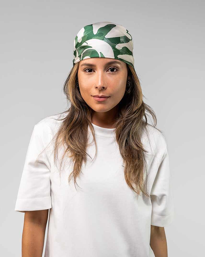 Suave, ligera y con una caída fluida, está fabricada en una composición de 97% poliéster y 3% elástico, lo que le da flexibilidad y comodidad para usarla de muchas formas: en el cuello, en el pelo, en la muñeca, amarrada a tu cintura o incluso como detalle en tu bolso.